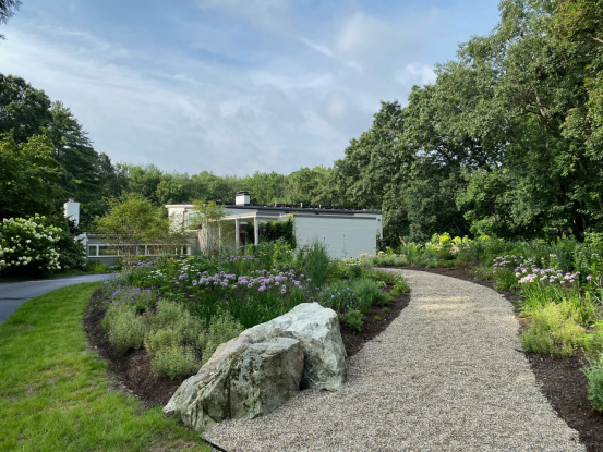沉浸于花園中有助于平靜甚至清空思緒。景觀建筑師 Inge Daniels 將景觀視為需要所有感官去體驗的事物。一個很好的例子就是圖中這片野生草地,這是她為馬薩諸塞州康科德的一個庭院設計的,一條礫石小徑從中穿過。