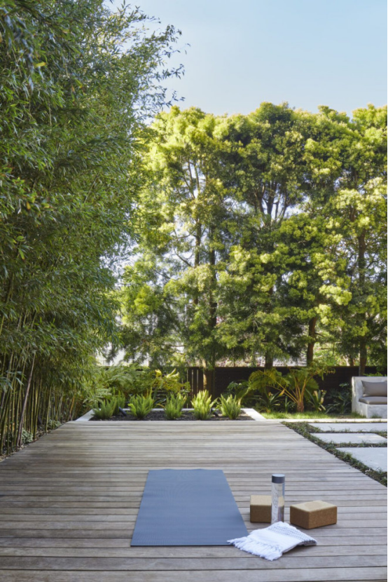 呼吸新鮮空氣和享受陽光是您可以為日常鍛煉增添的益處。在舊金山的這個院子里,Shades of Green Landscape Architecture 打造了一個甲板,是進行瑜伽和其他鍛煉的絕佳場所。將您的瑜伽墊、跳繩、自由重量器械或其他健身器材放在門邊,方便隨時拿到戶外使用。