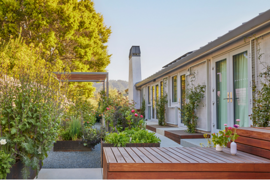 對于圖中這個舊金山灣區(qū)的院子,景觀設計師 Lisa Howard 的客戶想要一個多功能的花園,她可以在那里嘗試不同的花卉和可食用植物。她還希望這個空間對孩子友好,這樣她的孩子們就可以和她一起享受收獲香草蔬菜和剪切花卉的樂趣。Howard 規(guī)劃了這個空間,添加了大型種植箱、座椅、礫石和一個工作臺。