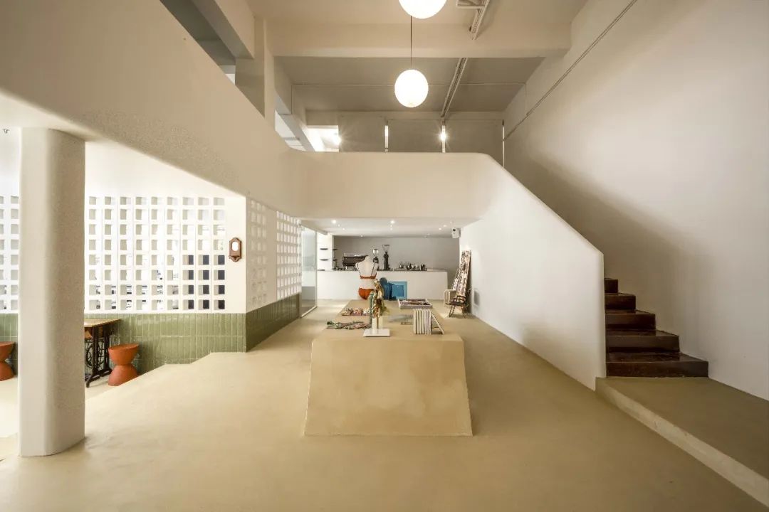 大面積的展示空間和咖啡休憩區(qū)由色塊鋪設(shè),暗紅、豆綠、米黃烘托起一個(gè)包容、輕松的空間。除了本身的動(dòng)線設(shè)計(jì),所有展示架、鏡子、桌子等都可以移動(dòng),為空間的可能性和靈活性留白。
