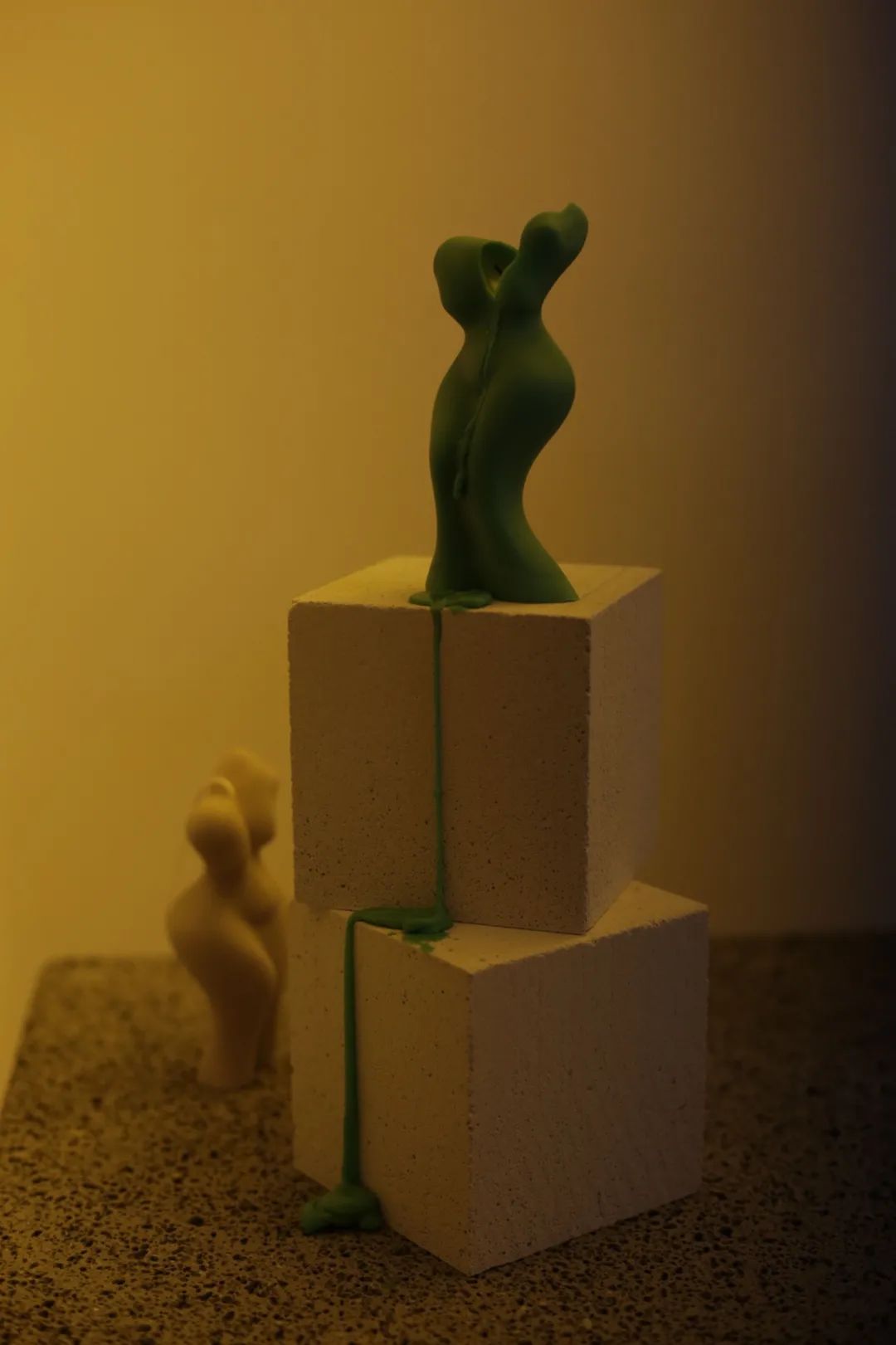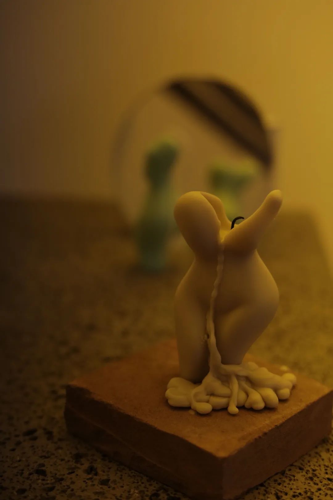 在做文身師的同時,kk一直在嘗試圍繞女性議題創作。11km daily這個小展廳里的第一個展「the girl is magic art」,就是展出她創作的首個藝術周邊,「燃燒女子 藝術蠟燭」。