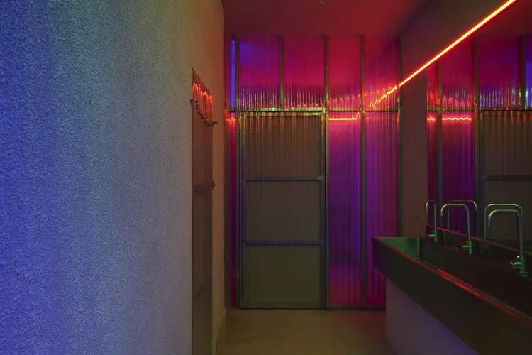 cue的主理人之一曬豆解釋,這樣設計有現實的考慮,俱樂部人流量大,分男女廁的話上廁所容易打擠,而且對cue來說,這樣以性別為界的局限和區分,與俱樂部想傳遞的感覺也太格格不入了,cue需要這個空間的每處都能讓人與人之間的溝通更近。