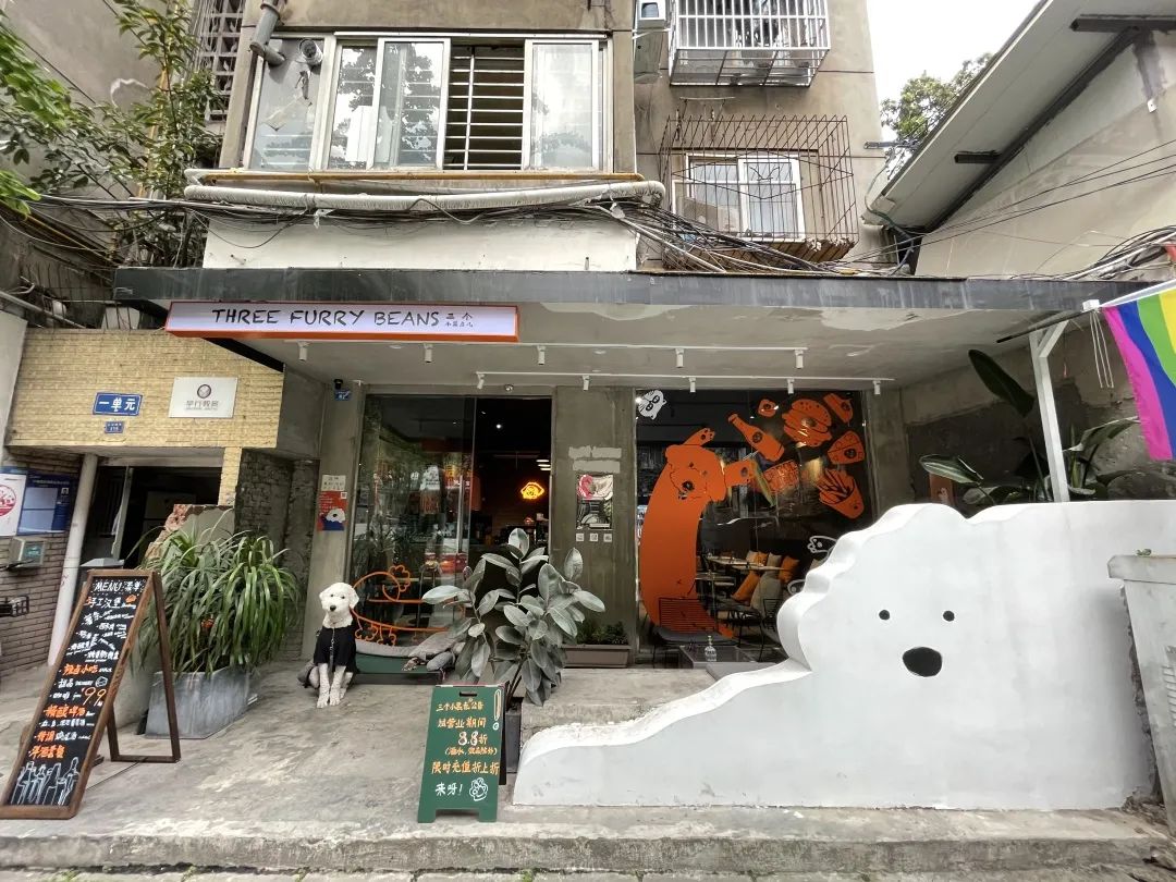 過街樓街,也就是老成都人口中的“家政一條街”上,一家叫“Three furry beans三個小黑點兒”漢堡餐酒吧的門口明晃晃地插著一面彩虹旗。