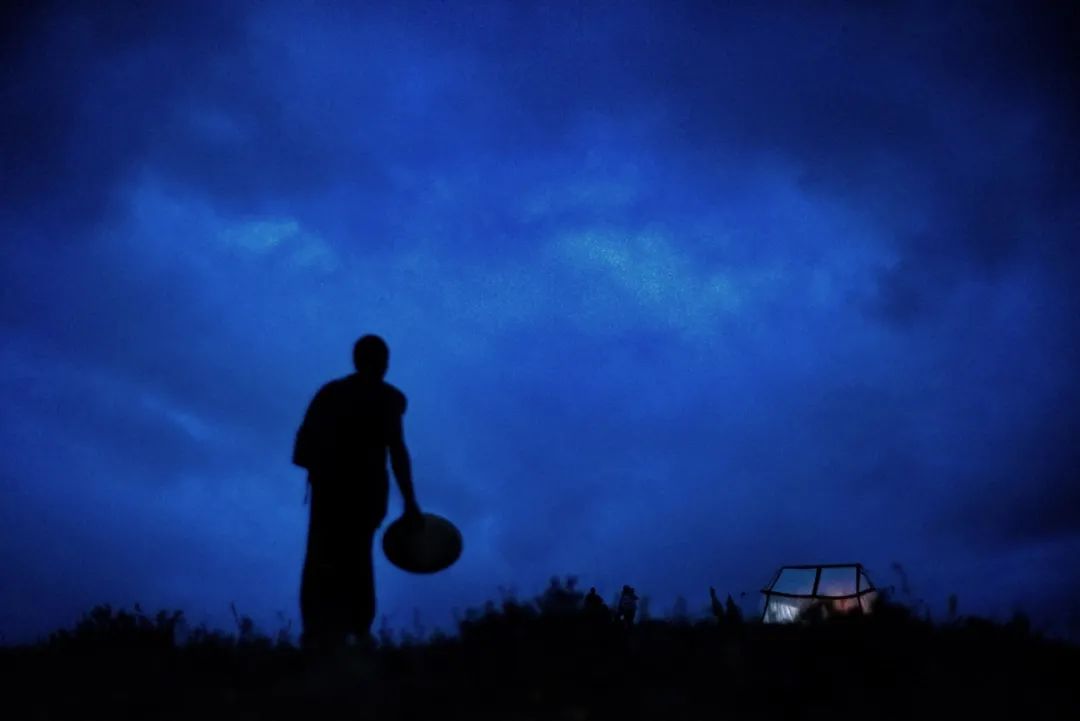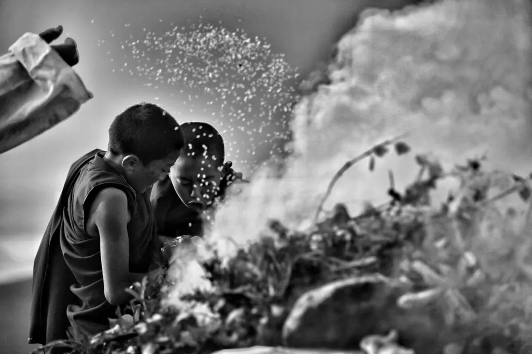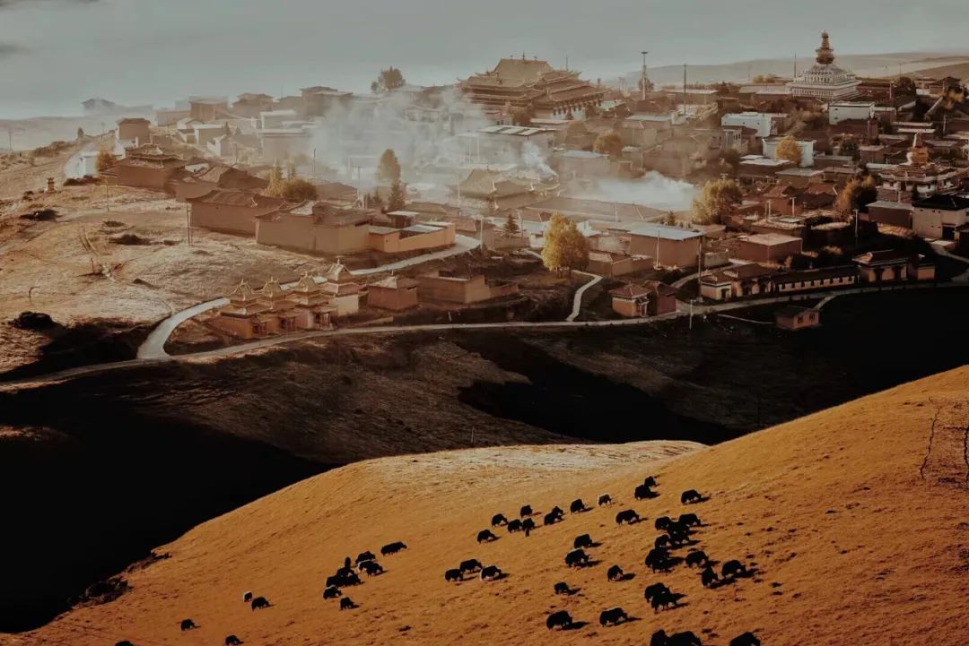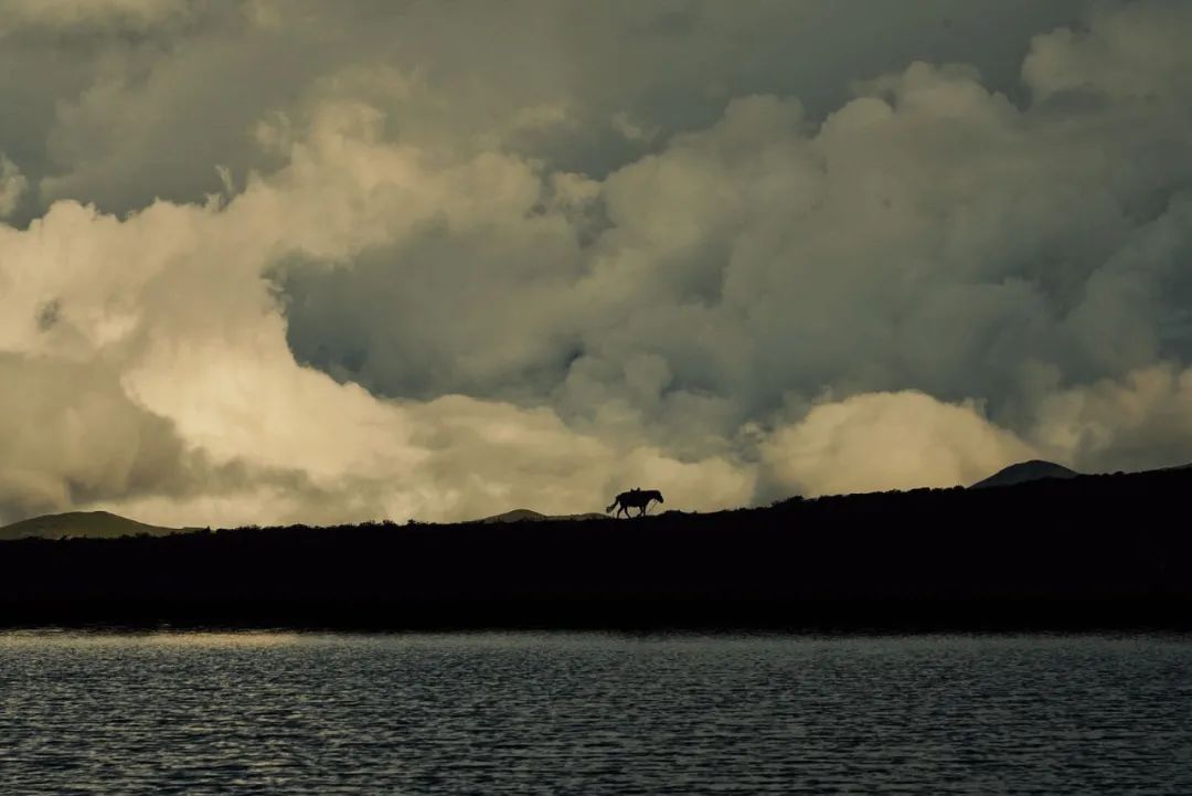 薩迦南寺,一位18歲的覺母下山采購(gòu)。買了一小袋蘋果,在山雨欲來之前,用袈裟擦干凈一個(gè)蘋果遞給我,帶著羞澀的笑容轉(zhuǎn)身離去。夕陽(yáng)的金光依舊照耀在她身上,而她無(wú)所畏懼地朝著濃墨重彩的雨霧中走去。
