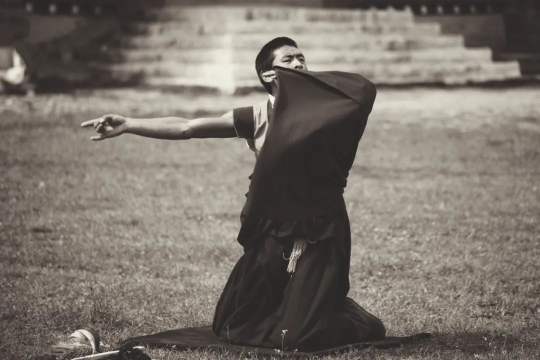 寺院舉行金剛神舞前,在練習(xí)的僧人