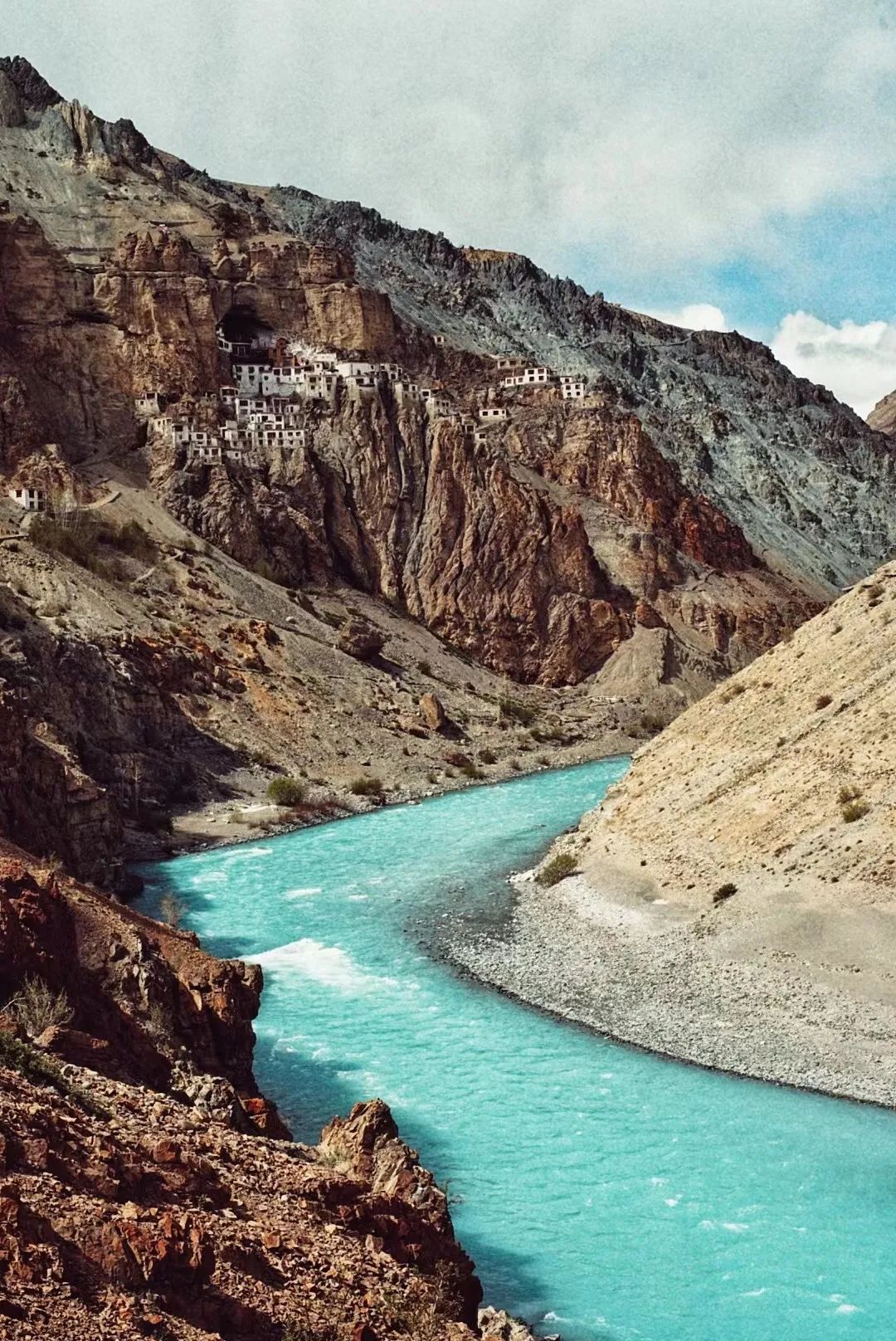 這一生只要見過Phugtal寺一次,就會(huì)永不忘懷,這座被譽(yù)為“世界上最難抵達(dá)的寺院”。在2017年時(shí),依然沒有通公路。在公路結(jié)束的地方,沿著Lungnak河畔峭壁上,千百年來人們踩出的小道,走了15公里后再轉(zhuǎn)過彎時(shí),白塔的深處,巍然屹立于懸崖上的Phugtal寺,出現(xiàn)在眼前。這是一座建于12世紀(jì)的寺院,在贊斯卡的深處,靜默守望著這一方的生靈。