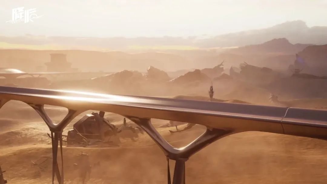 Hyperloop TT在游戲中化身為橫跨戈壁的超級高鐵,用“此在”(Dasein)的方式,連接了虛擬與現實,過去與現在。同時,高聳于地面的設計也減免了來自地面異種的攻擊,為星球各地資源運輸提供了安全保障。