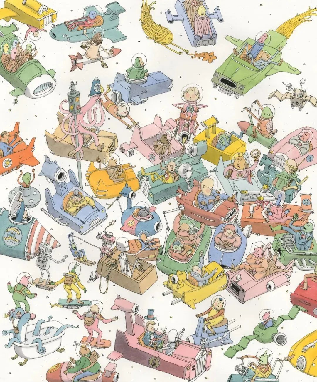 從普通的日常物件、動植物到大型的建筑機械,Mattias Adolfsson?的手繪插畫總是充滿故事性,打開一個天馬行空的奇異世界。