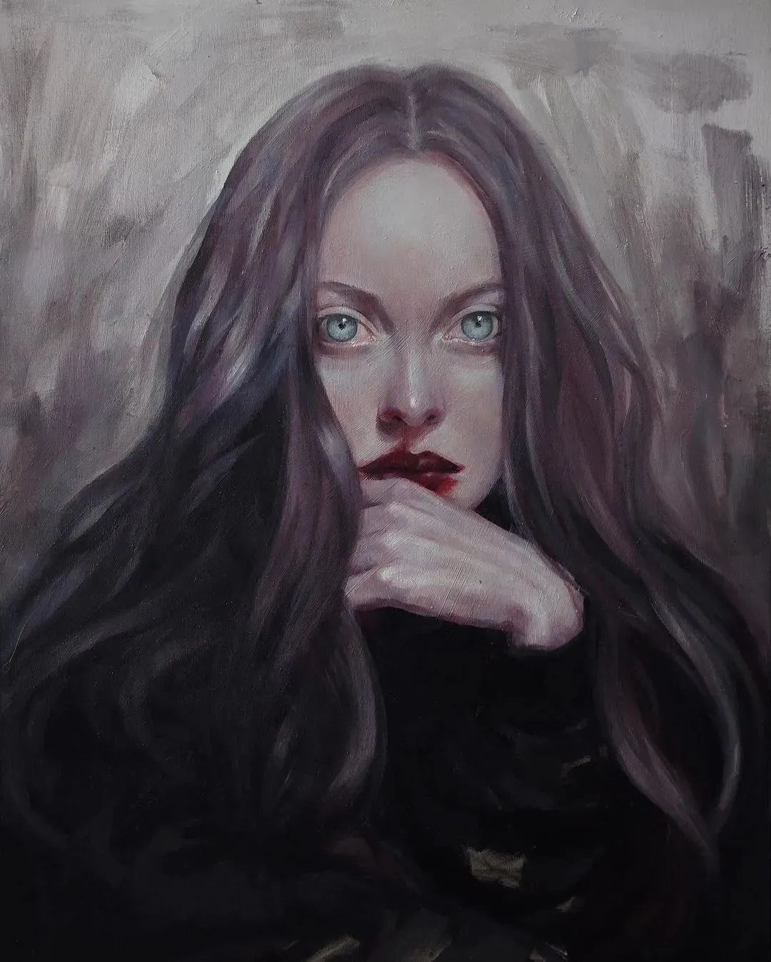 她沒有用過多的色彩來表達,通過最簡單的光影和筆觸來體現人物的肌理,細致的人物刻畫流露出一種有些不可名狀的低落、抑郁與掙扎。