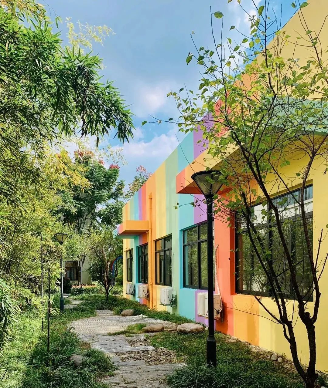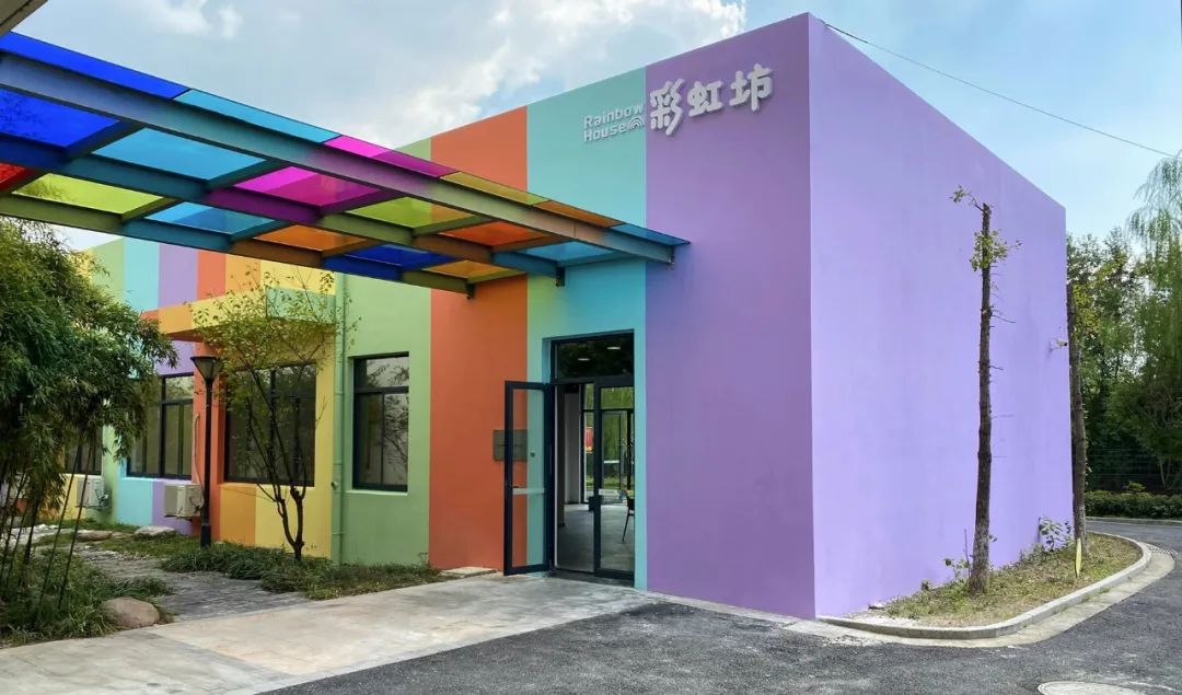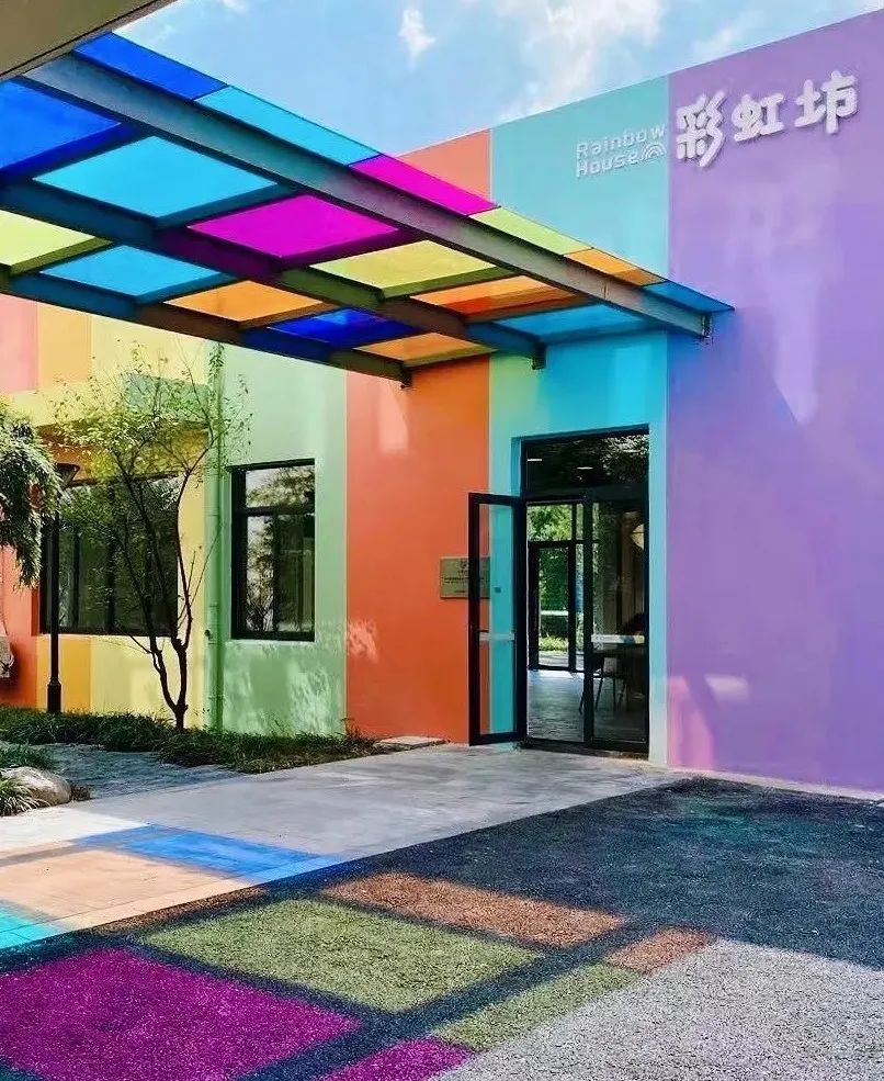 設計師給出“彩虹坊”這個名字,寓意這些孩子雖然生而不幸歷經暴風驟雨,然而“風雨過后終現彩虹”,他們的生命因為風雨的洗禮必然綻放華彩;