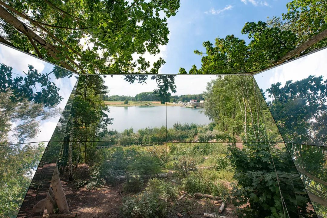 該項目的名稱源于其隱藏于森林中的設計思路,環繞在建筑四周的反射玻璃使蔥郁的環境得以擴展。