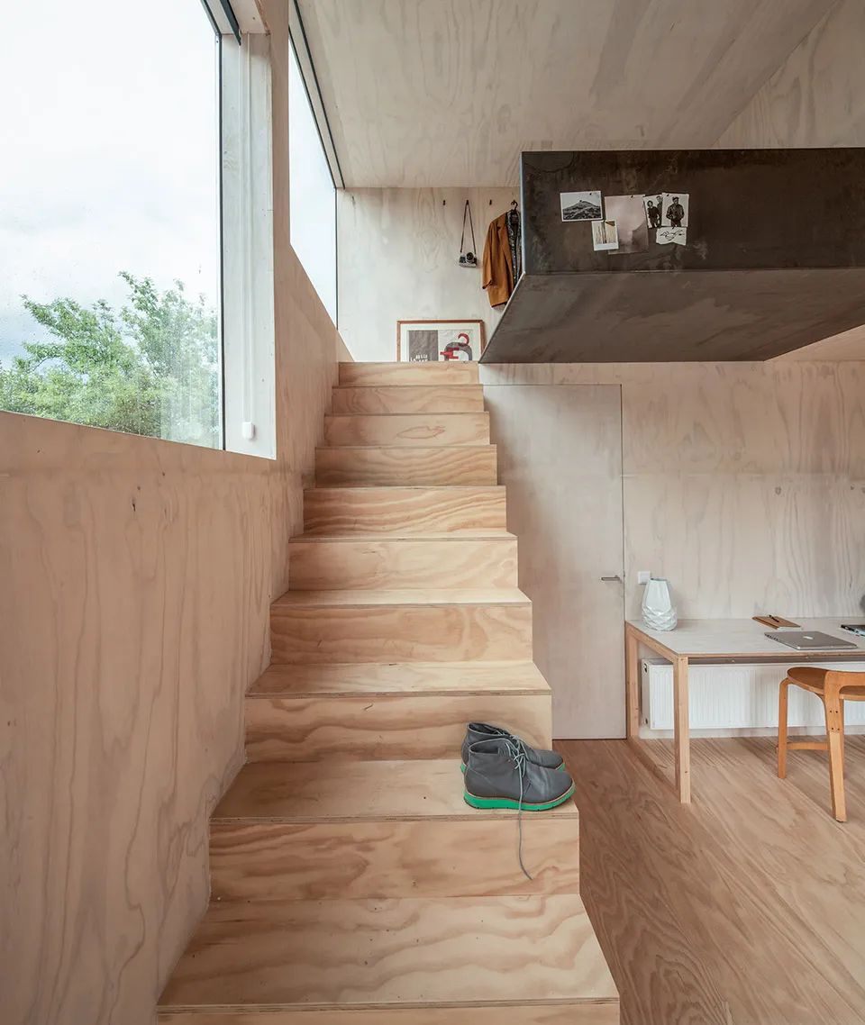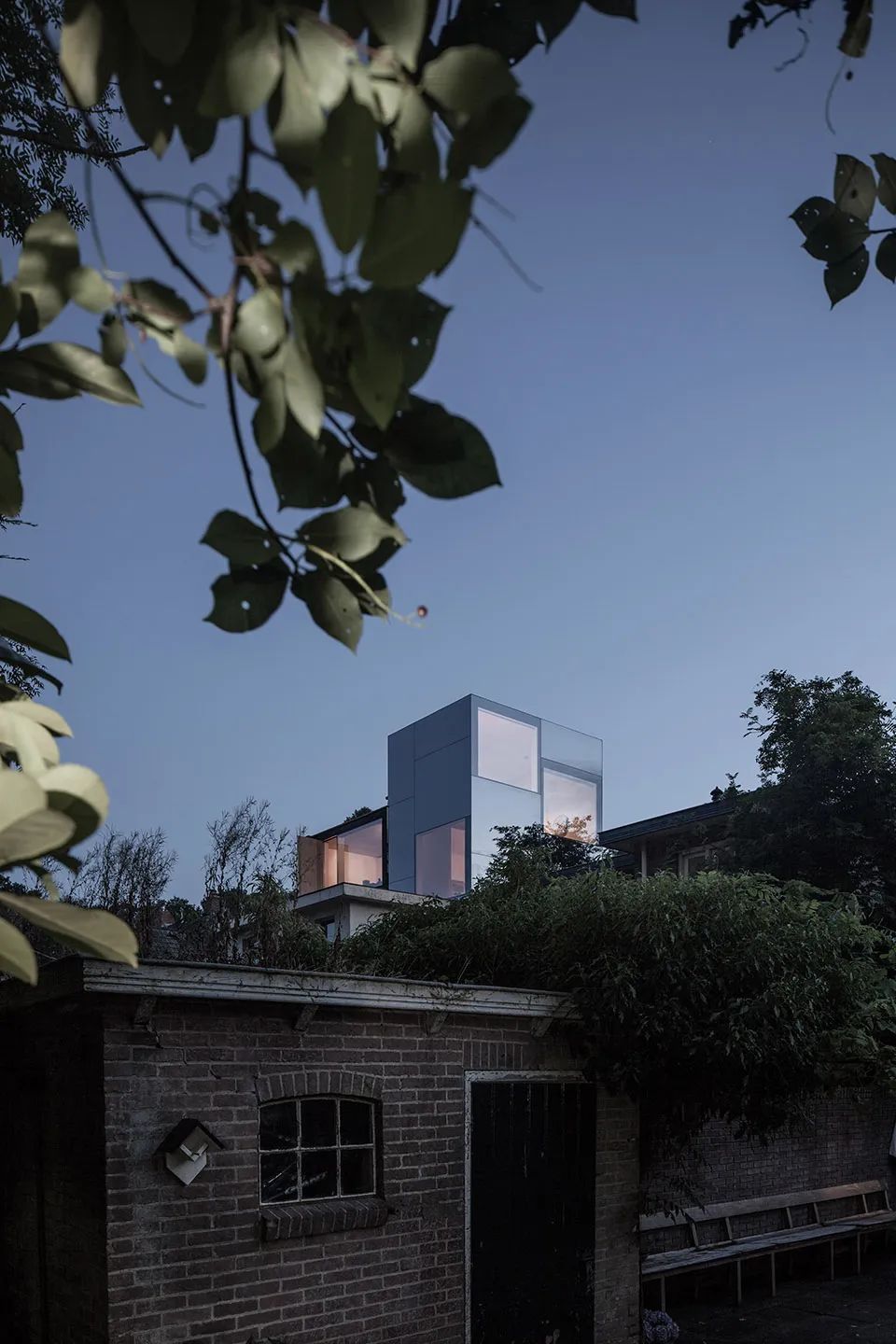 這個屋頂的延展設計完全被玻璃鏡子覆蓋來表現建筑輪廓。這樣的設計賦予樹屋與周圍環境一個有趣的關系:在白天,玻璃鏡墻映射出周圍環境,所以他的房間仿佛消失在天空中,男孩可以變身為外部世界的偷窺者。