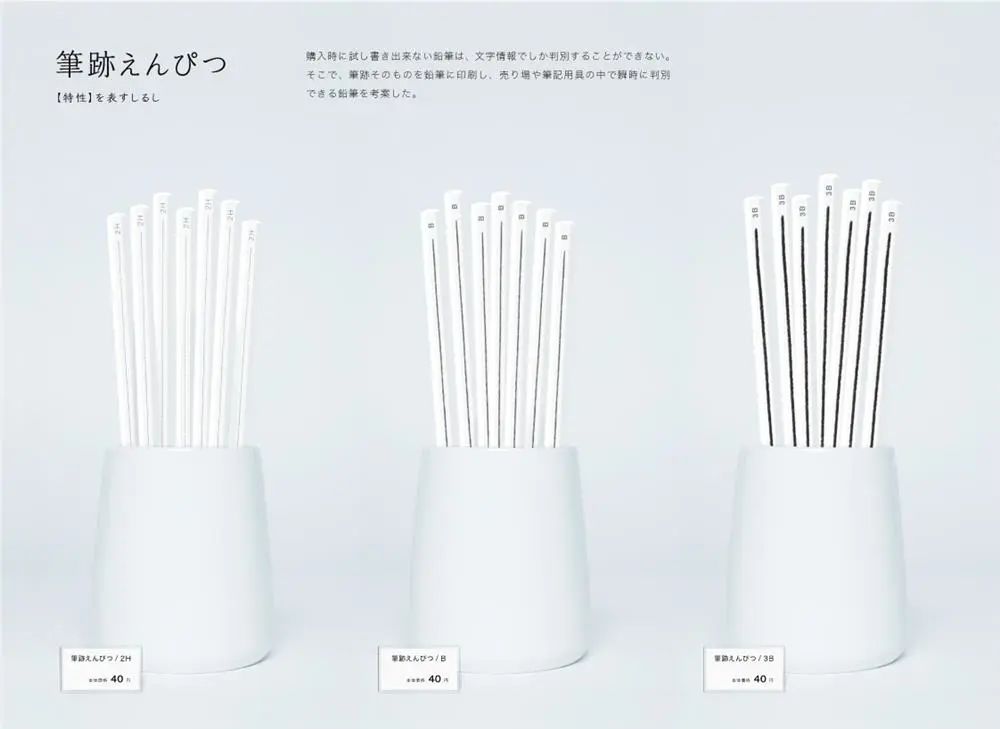 為了讓大家在購買鉛筆的時候能夠一目了然看到筆跡的粗細,日本設計師石川和也設計了這款“筆跡鉛筆”,他依照3B到2H的軟硬度,將鉛筆的筆跡直接印在了筆桿上,這個巧妙的小設計,一下子就解決了在不能試寫的情況下購買鉛筆的難題。