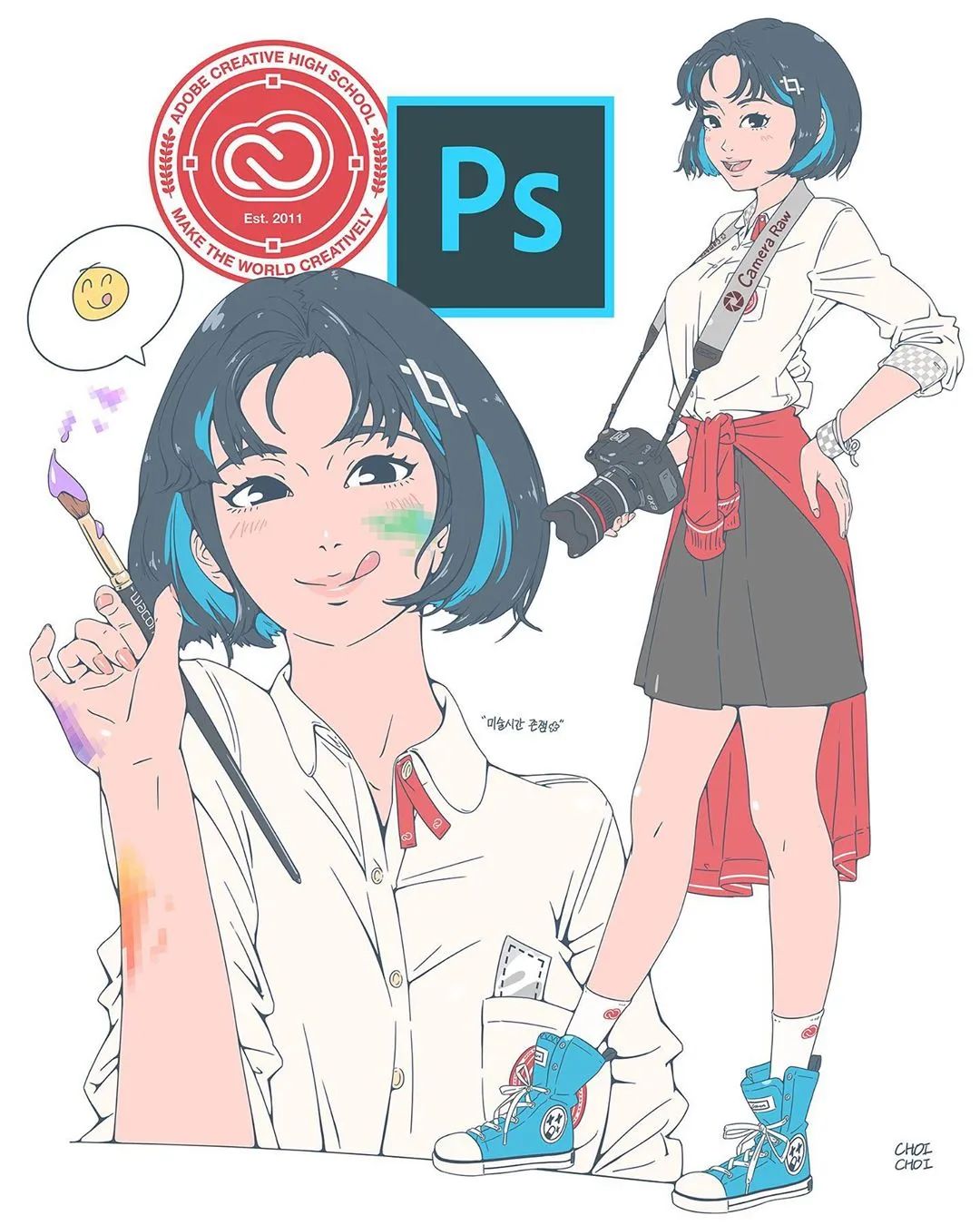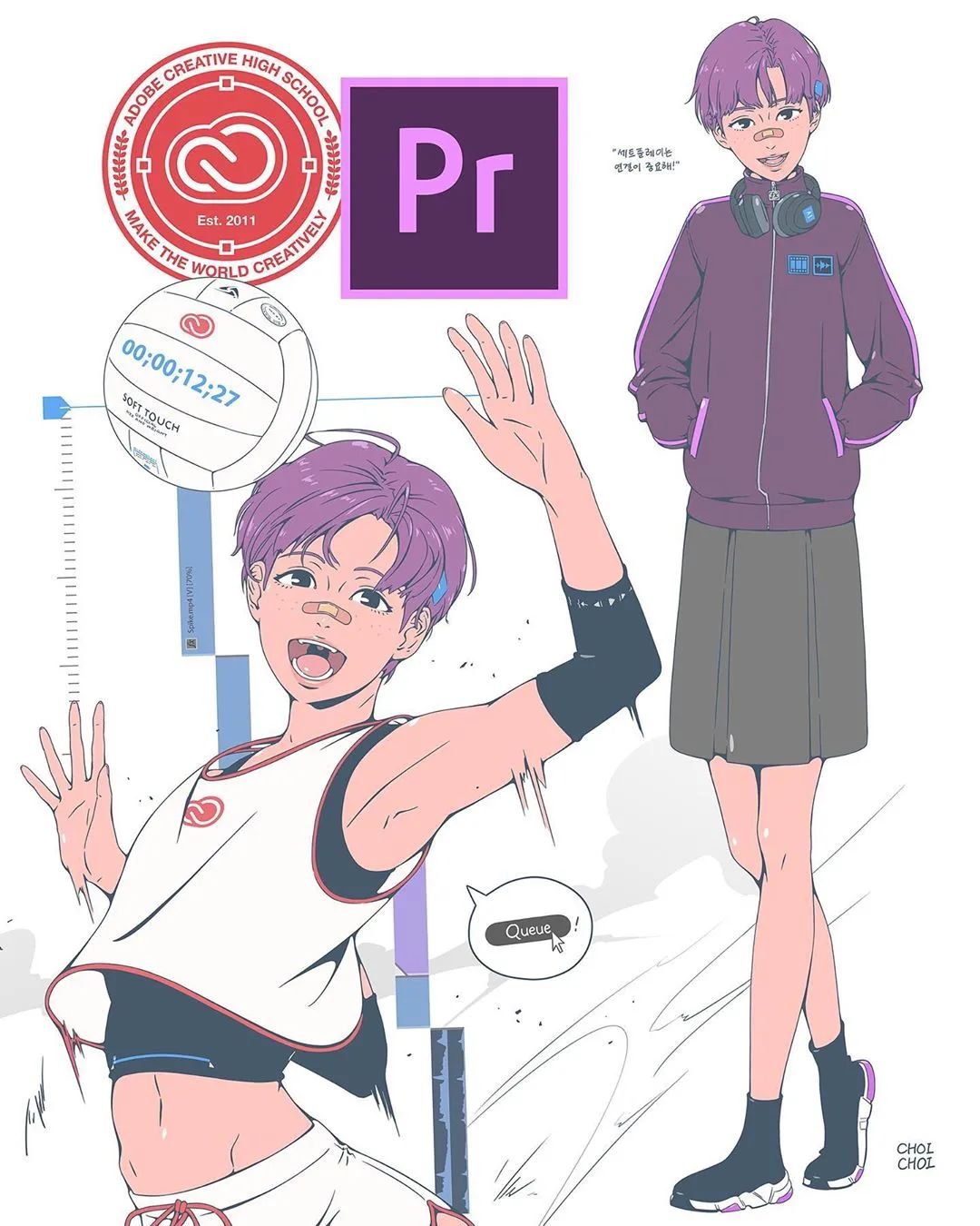 韓國插畫師iohc_choi,將Adobe系列軟件圖標的功能進行擬人化創作,繪制每個好有特色的小姐姐,線條流暢干練畫風清新可愛。一起來看看這些Adobe“女團”人物小姐姐吧!
