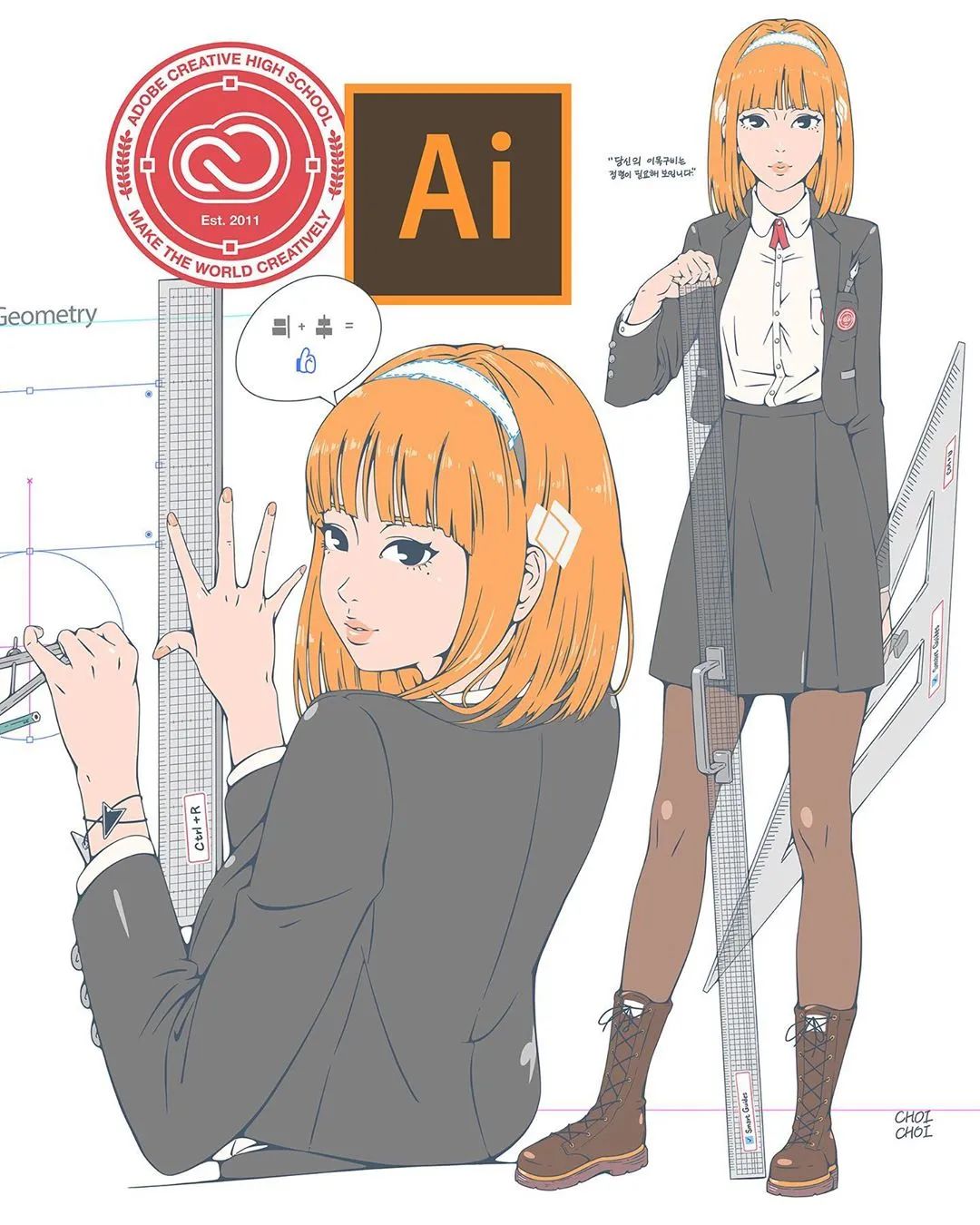 AI基于矢量的圖形制作軟件。擬人化之后有著和圖片一樣的發色,手持測量尺度沉穩嚴謹的干練學院風形象。