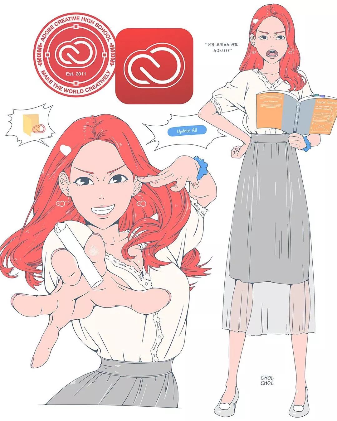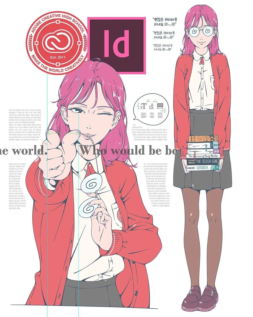 Adobe應用程序安裝和服務,擬人化后是活力四射嚴厲的教師形象。