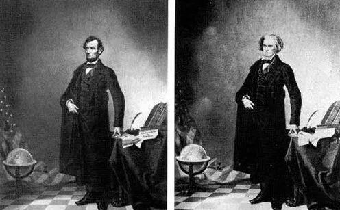 1860年左右,為了顯示出林肯的偉岸和豪邁。可憐的南方政客卡爾霍恩頭被拿掉了,直接裝上了林肯。