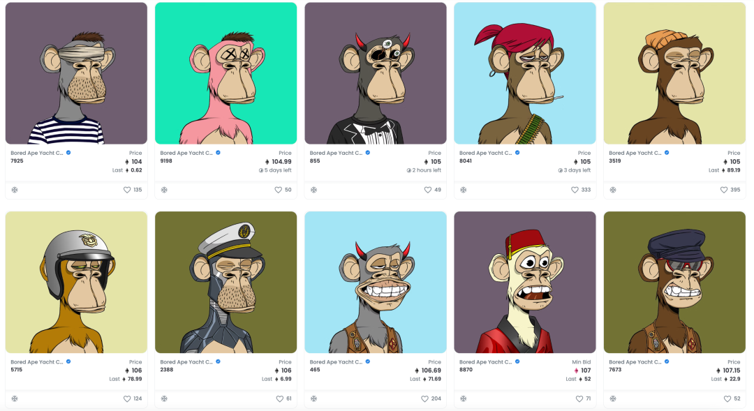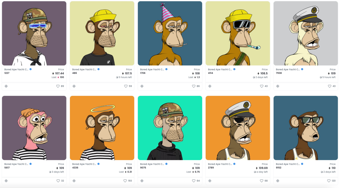 這個系列在OpenSea交易平臺于2021年4月30日上線,推出當晚就全部售罄。不久后,這系列交易價格更是一漲再漲,很多國內外明星都入手了這個系列,賈斯汀比伯入手的成交價更是高達830萬人民幣。另外,這個系列創作者還允許購買者用自己所購買的NFT來生產周邊產品,用于商業用途,而不是僅僅用于收藏。