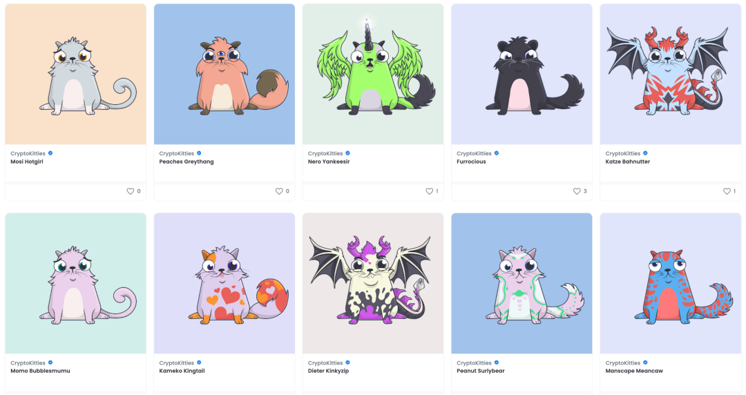 《謎戀貓》是世界上首款可以繁殖的NFT游戲,每款貓咪都不同,攜帶各種不同的基因屬性,玩家不僅可以購買、出售,還可以繁殖出后代,一度掀起一股養貓風潮。并且他們繁衍出的后代也是可以出售的,根據稀有程度售價不同,有的貓一只成交價高達70多萬。