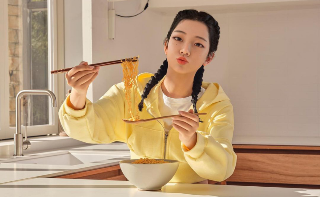 這位虛擬網紅還參與了?PALDO泡面的宣傳,公開與韓國人氣男演員丁海寅進行合影,一時引發不小的討論。
