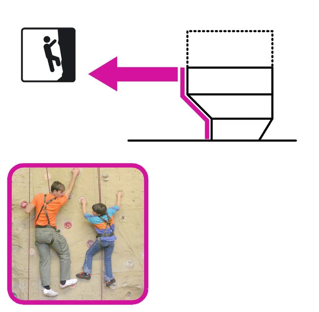 一樓的表演空間通過為觀眾增加樓梯來擴(kuò)展建筑物的布局。墻壁傾斜延伸至二樓,突出了約50平方米的舞臺(tái)地板。而傾斜墻壁的另一邊,設(shè)計(jì)師利用這個(gè)坡度增加了攀巖空間,達(dá)到了空間利用的最大效率。一層的空間可以靈活使用,可以通過關(guān)閉墻壁中朝向入口的滑動(dòng)門來關(guān)閉房間,當(dāng)關(guān)閉時(shí),舞臺(tái)地板也可用于較小的活動(dòng)。房間開放時(shí),表演空間通過開放式樓梯連接到二樓的多功能區(qū)。