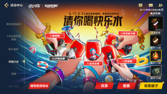 在游戲內,玩家可以通過完成每日任務來獲得“虛擬英雄罐”,集齊5款不同的虛擬罐就能得到“可口可樂聯名擊敗印記”、龍魂水晶等道具,還有機會獲得官方送出的限量版聯名可樂。