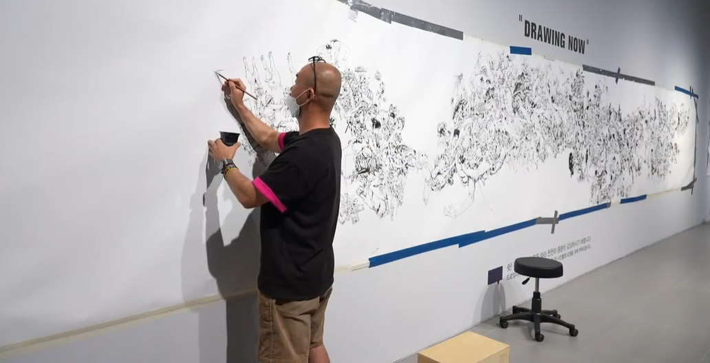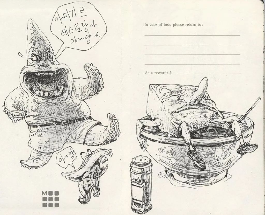他堅持每天畫畫,長的時候一天畫10小時,連洗頭都覺得浪費時間。即便少,也會保持每天2~3個小時以上的訓(xùn)練時間。金政基曾經(jīng)是韓國最出名的藝考培訓(xùn)老師,帶出了許多知名畫師,同時他也是畫畫最瘋狂的人,吃個飯也要在餐巾紙上畫畫。一張輕薄細(xì)軟的餐巾紙,他能畫出具有透視、扭曲空間感的畫面,仿佛要把人吸進去。