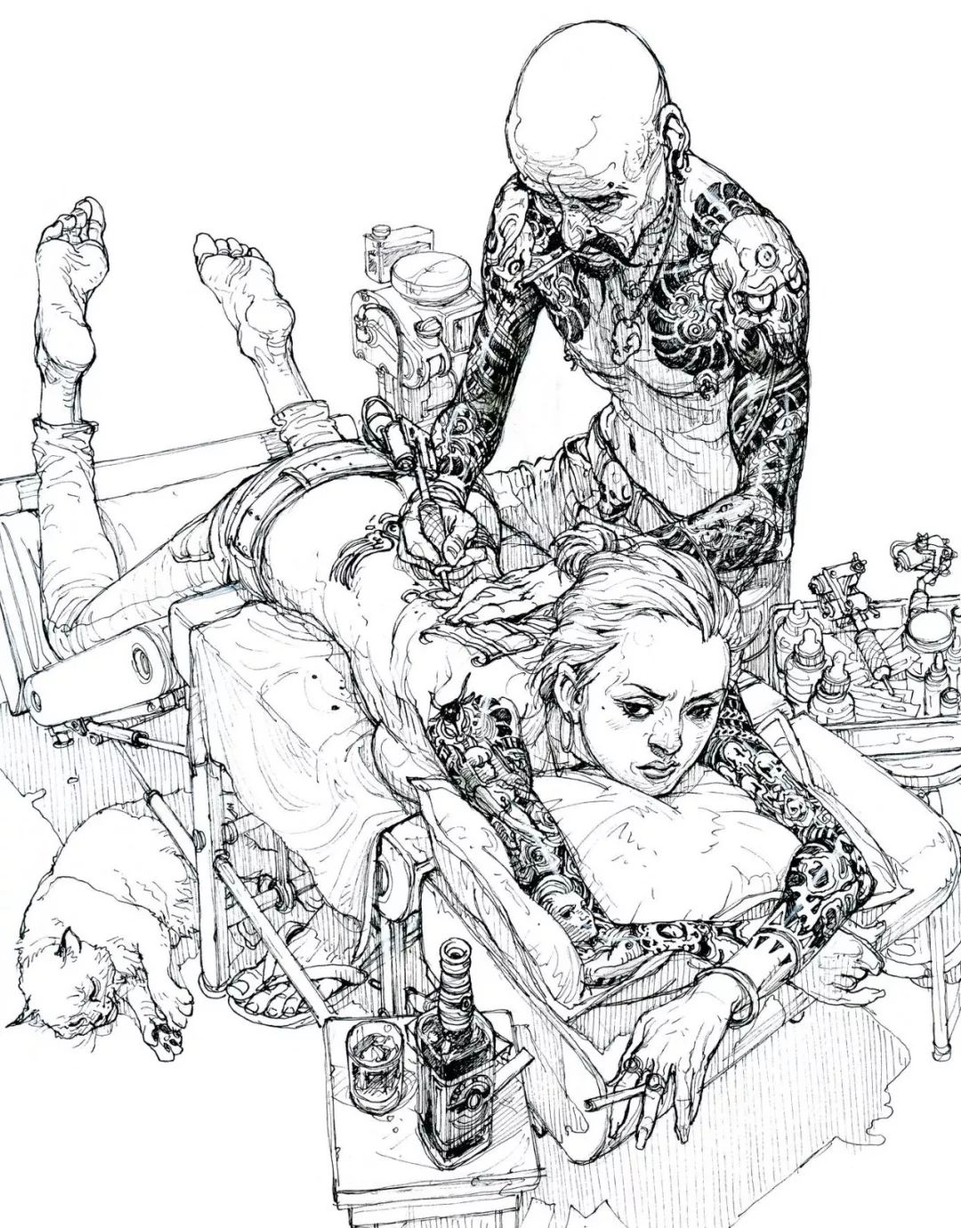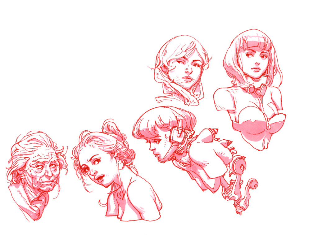 與此同時,金政基的科幻之中帶著細(xì)膩,畫每一個人物都仿佛在做人體解剖,線條流暢,造型準(zhǔn)確,非常寫實,仔細(xì)看,人體皮膚的紋路與褶皺都栩栩如生。