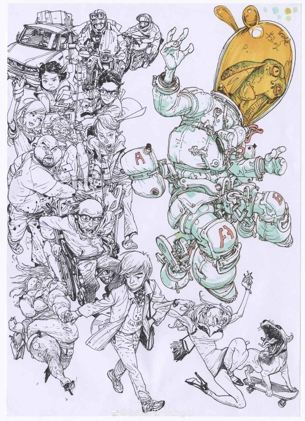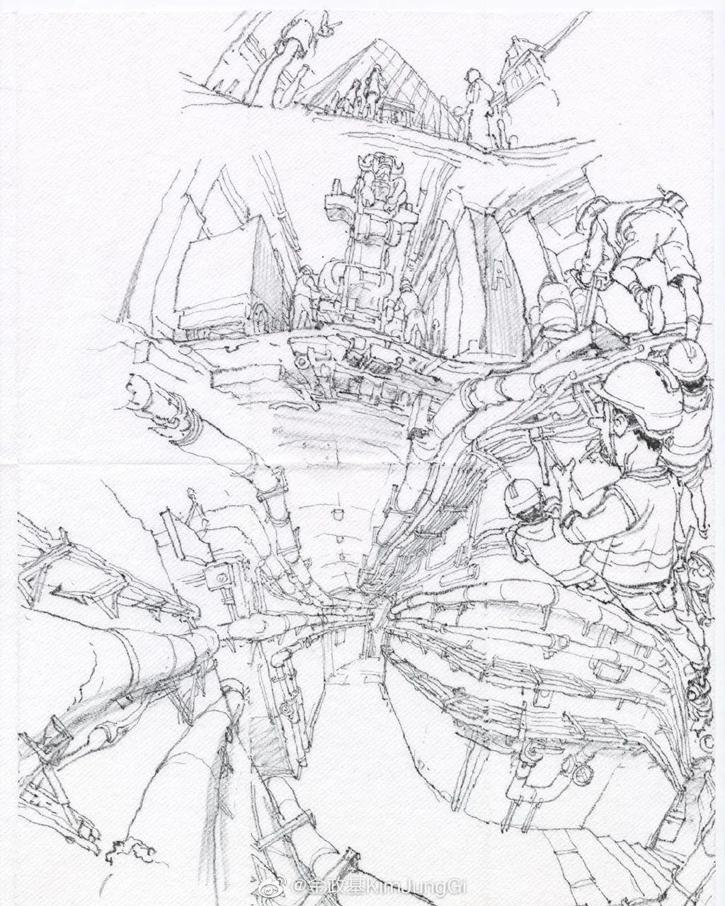 任何人體姿勢,任何機械構(gòu)造,任何地球上的可見或不可見的事物,金政基一張紙一支筆大手一揮,悉數(shù)上場。