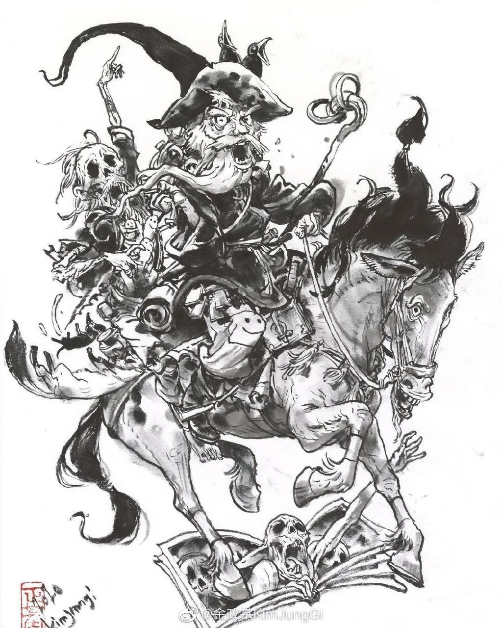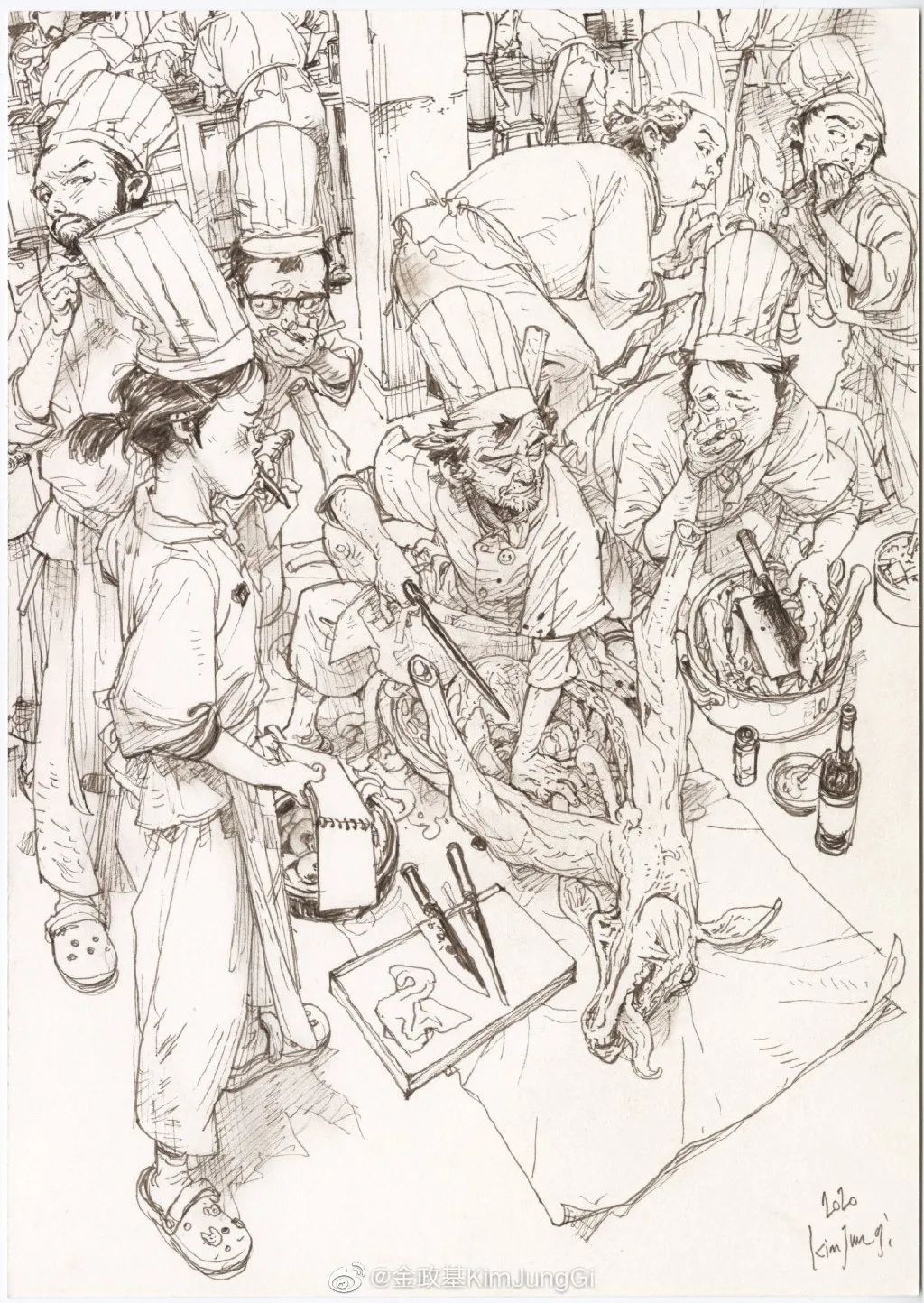 他是天才嗎?金政基本人并不同意。金政基從韓國東義大學(xué)西洋美術(shù)專業(yè)畢業(yè),大學(xué)二年級時,他因為畫功優(yōu)秀受到了《Young Jump》雜志編輯的關(guān)注和青睞,并向他約稿。2001年至2002年,金政基便開始為《Young Jump》創(chuàng)作漫畫《Pony Pony》,正式踏上了藝術(shù)創(chuàng)作之路。從業(yè)20年,他能達到如今的境界,也完全是繪畫量積累的結(jié)果。“蓋手熟爾”的賣油翁秘訣依然能用在他的身上。