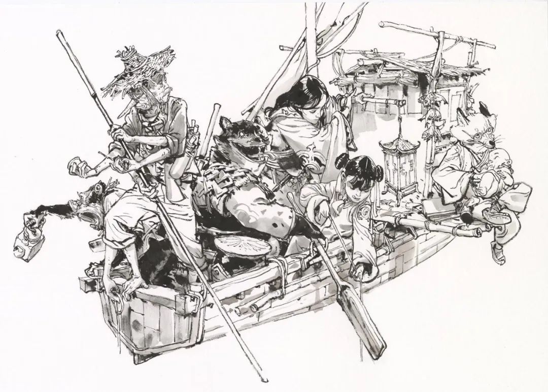 這一切都需要極高的審美和強大的基本功,人物位置、構(gòu)圖布局,他都能做到心中有數(shù),每個人物、物件的細(xì)節(jié)刻畫,則早已經(jīng)是刻在骨髓里的記憶,下筆猶如神助,行云流水。
