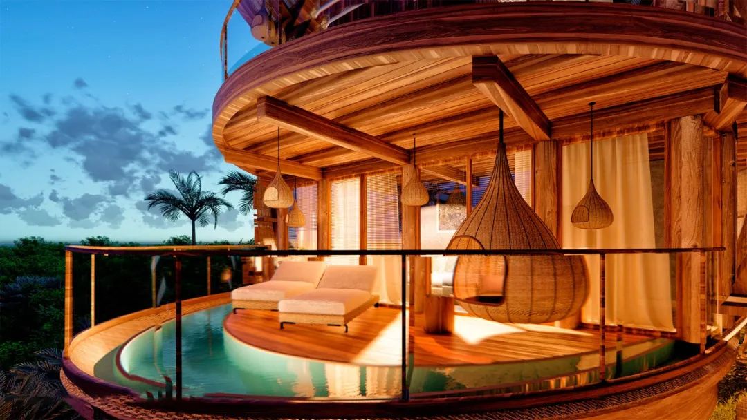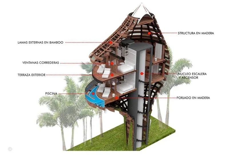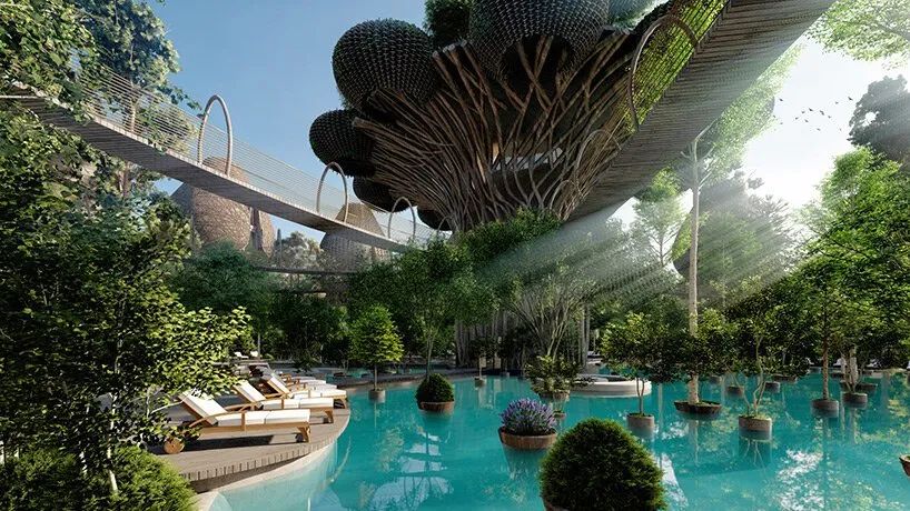 靈感來自鳥巢,均勻分布在生命之樹的樹干周圍。在每個別墅房屋內就能欣賞到叢林景色。