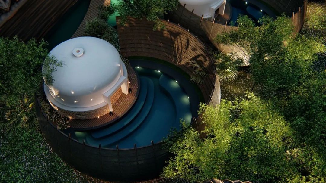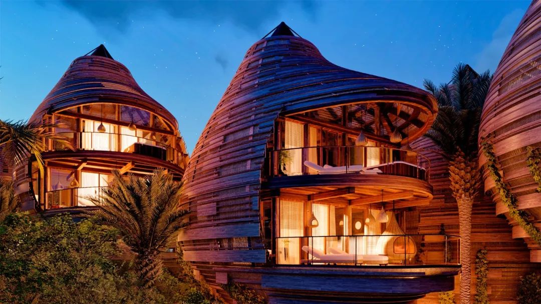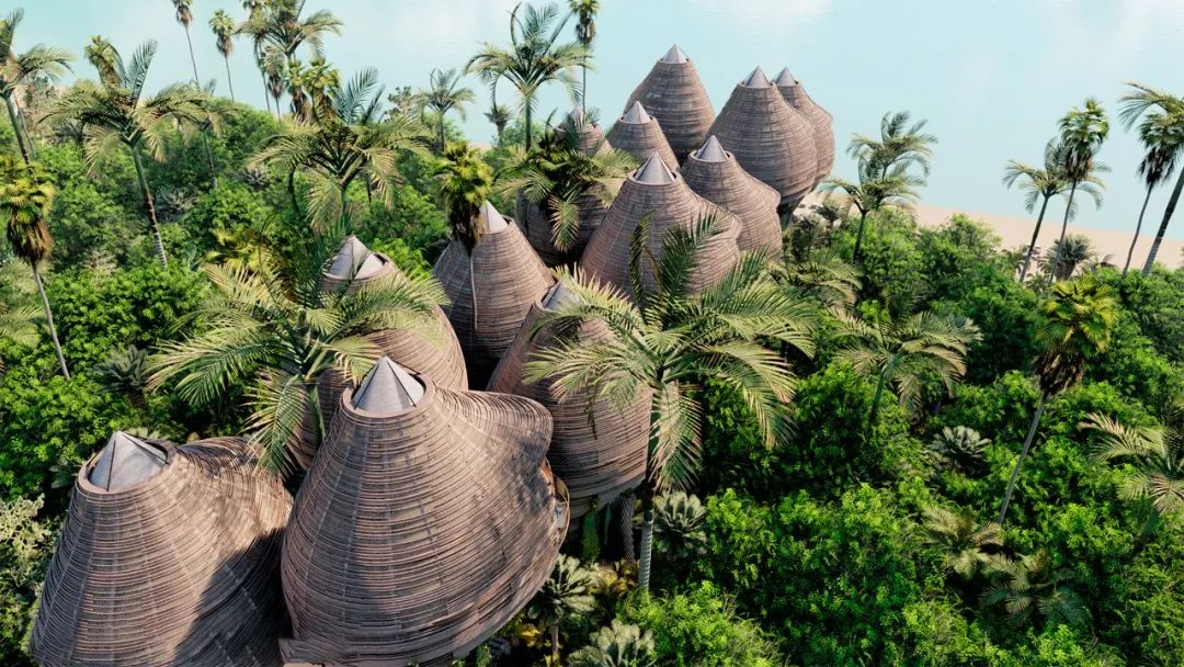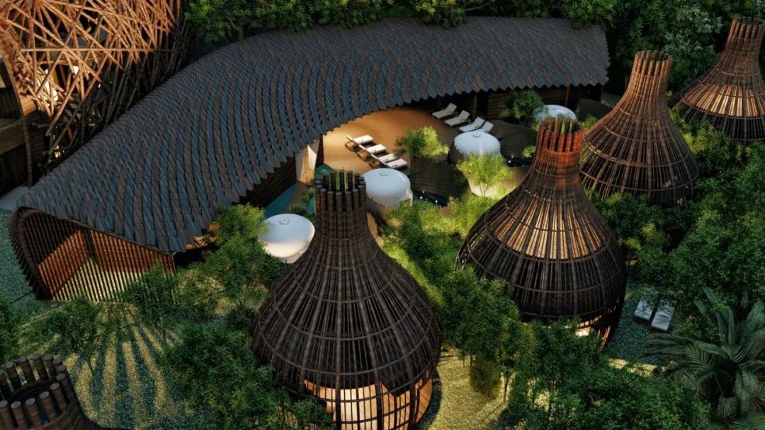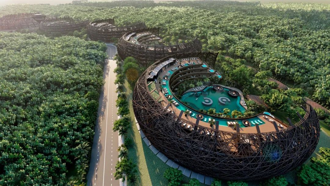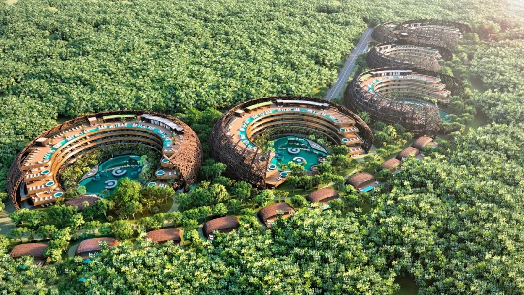 項目位于一個當地的叢林里,由十個“巢穴”別墅和二十個酒店休息室組成。