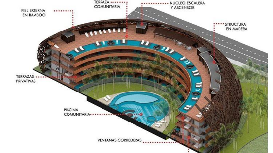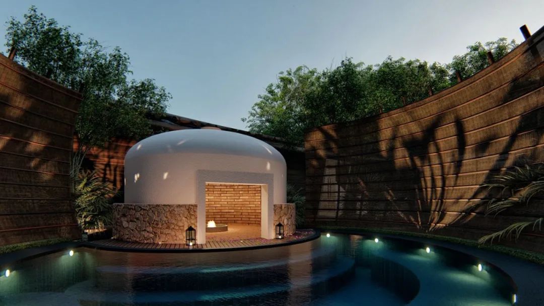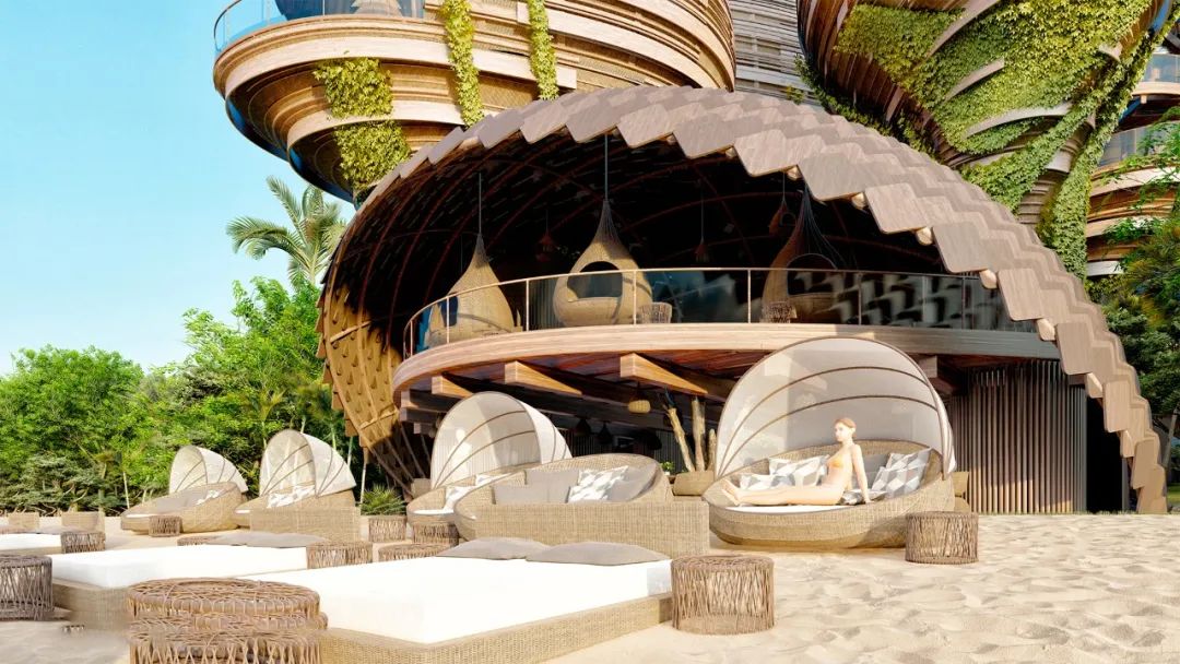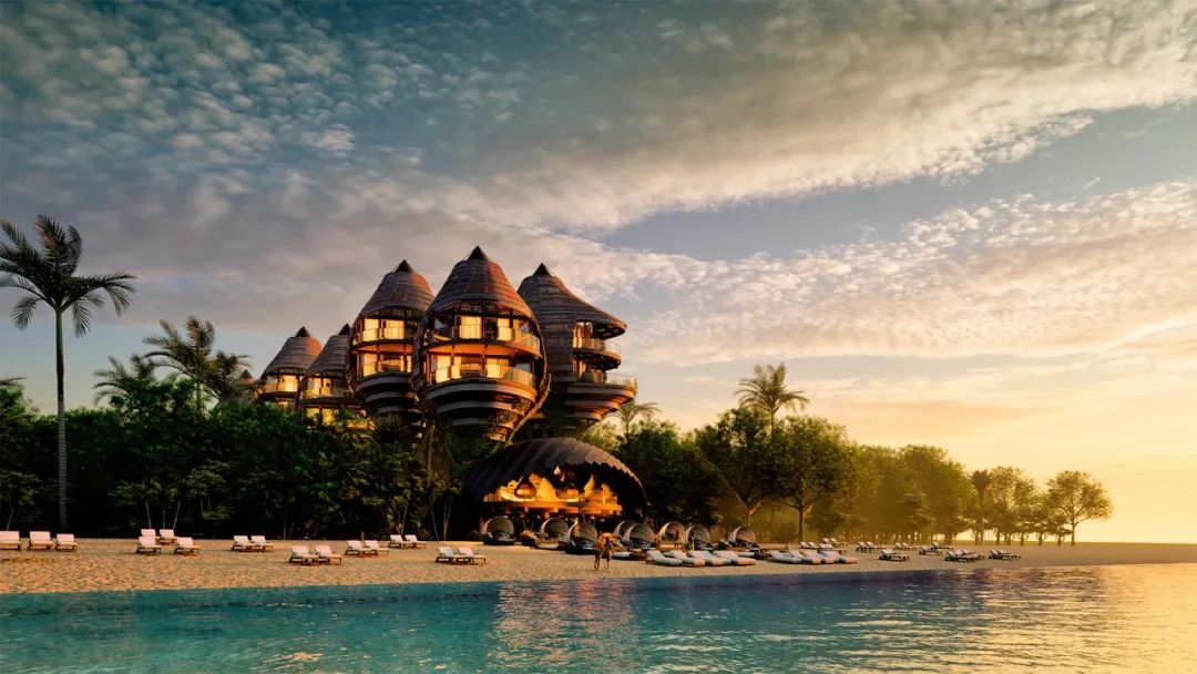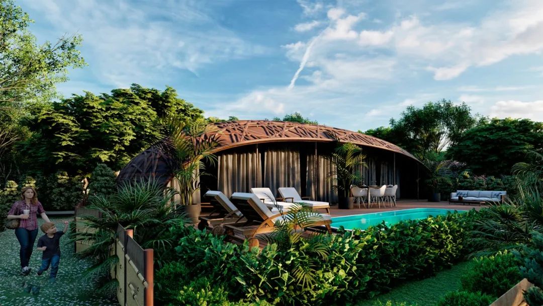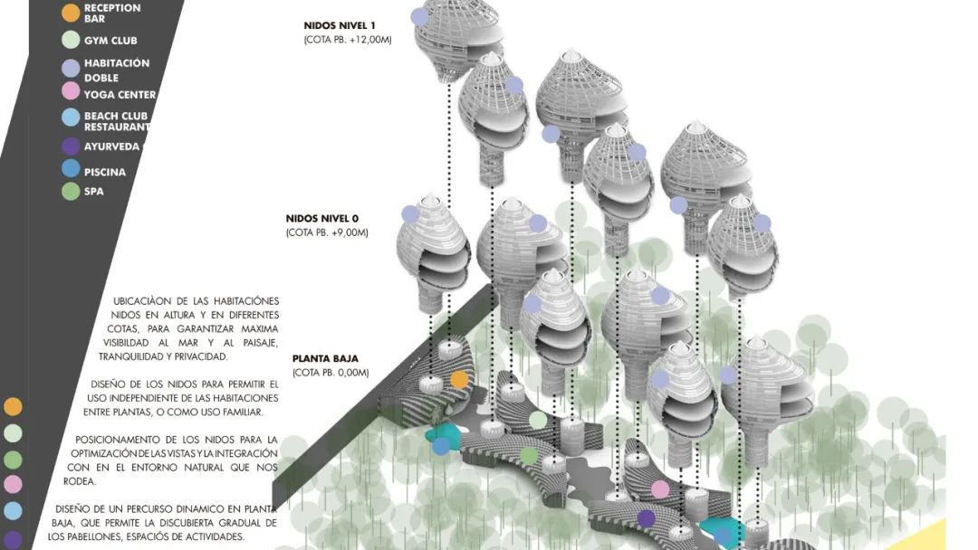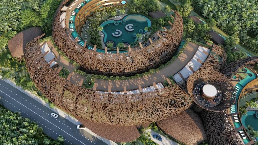 項目位于一個當地的叢林里,由十個“巢穴”別墅和二十個酒店休息室組成。