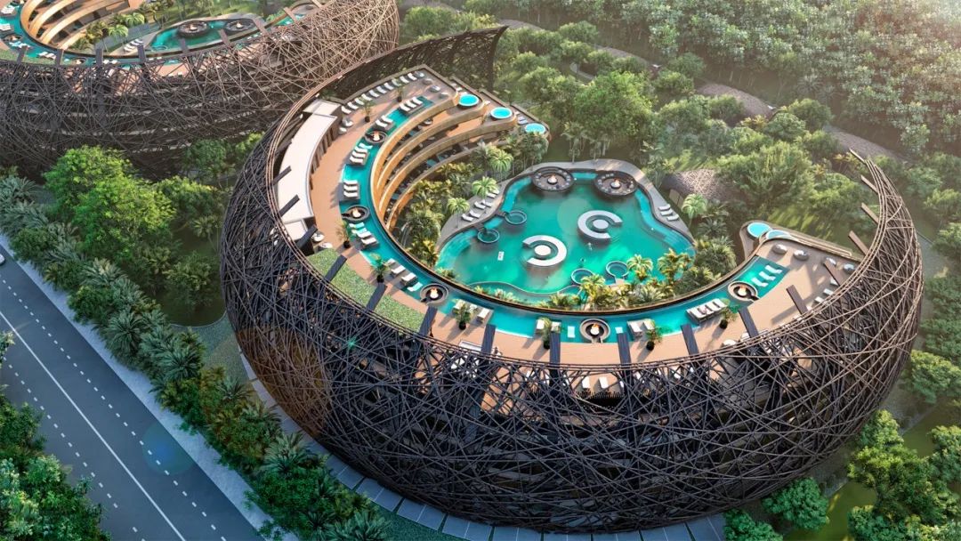 12個螺旋狀的類似”鳥巢“的巢穴是酒店的主體