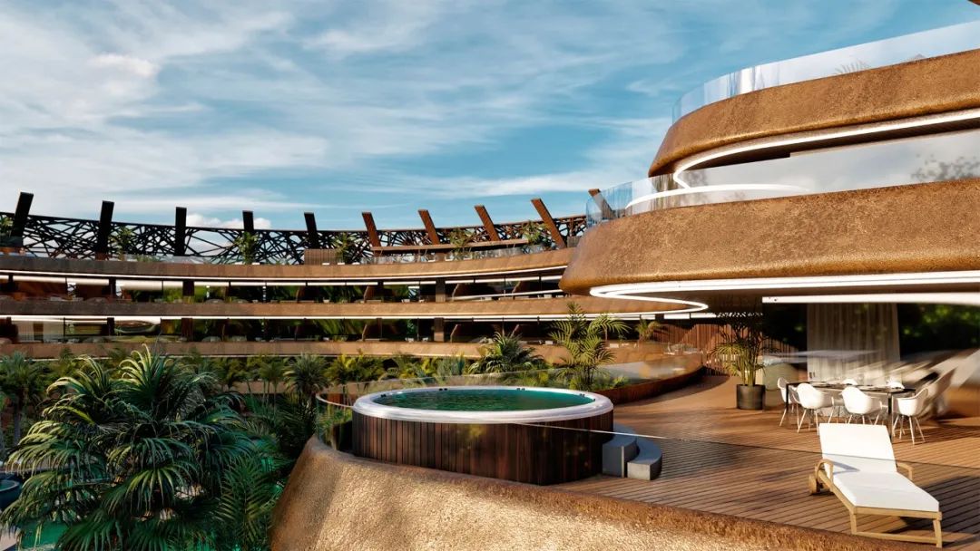 里面包含了完善的社區空間、戶外生活區和別墅、一個多功能展館、一個餐廳和一個全景巢,可以欣賞到周圍景觀的無限制和令人窒息的景色。