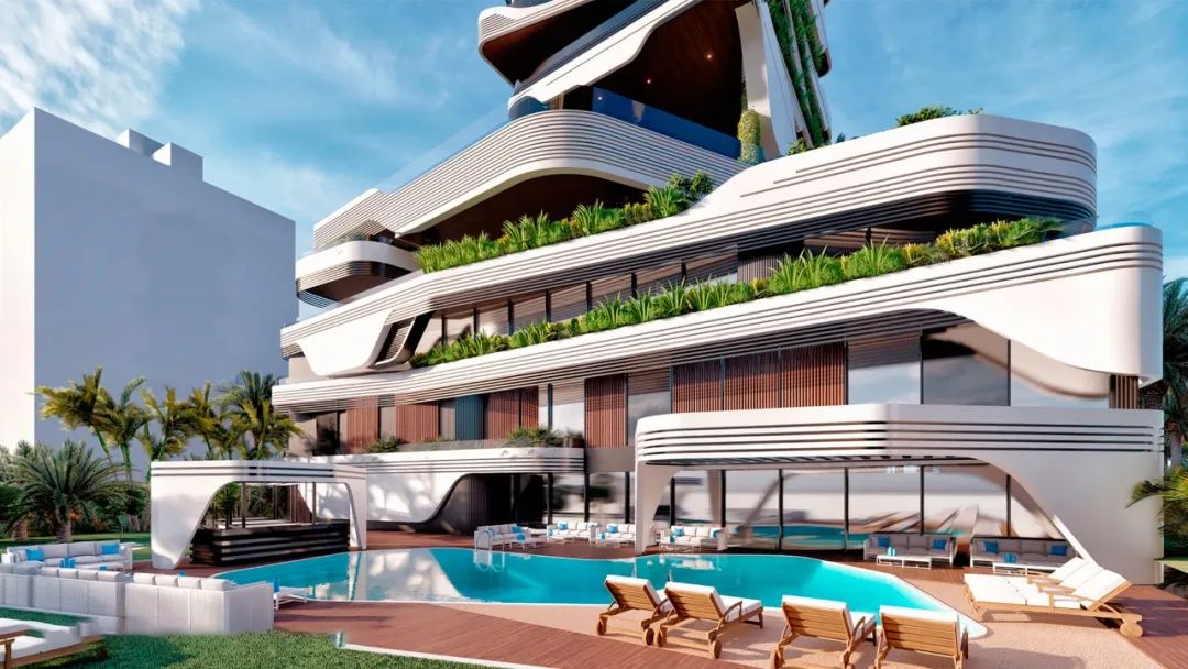 除了鳥巢酒店,他也有比較落地的項目設計,酒店外觀受到海洋波浪和游艇造型的啟發,建筑師將整個建筑的體塊均勻堆疊,形似游艇。